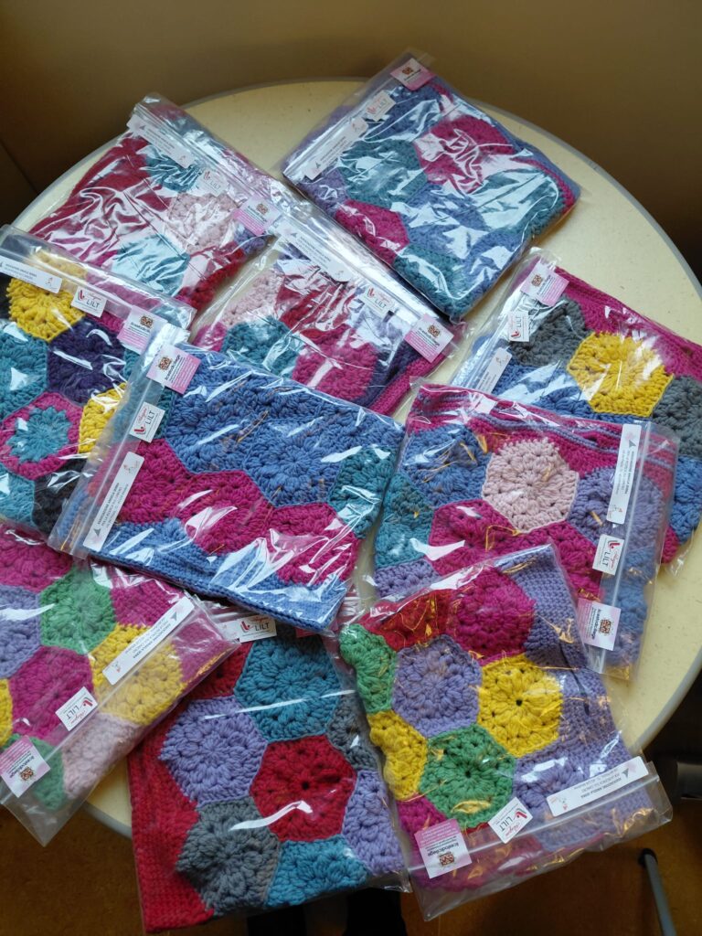 Le volontarie mettono a disposizione un kit con tutto il necessario per iniziare: filati, uncinetti, istruzioni e soprattutto tempo e presenza. Le pazienti possono scegliere liberamente se partecipare, senza obblighi, secondo le proprie energie e il proprio desiderio. I rombi prodotti vengono poi assemblati per dare forma a piccole borsine colorate