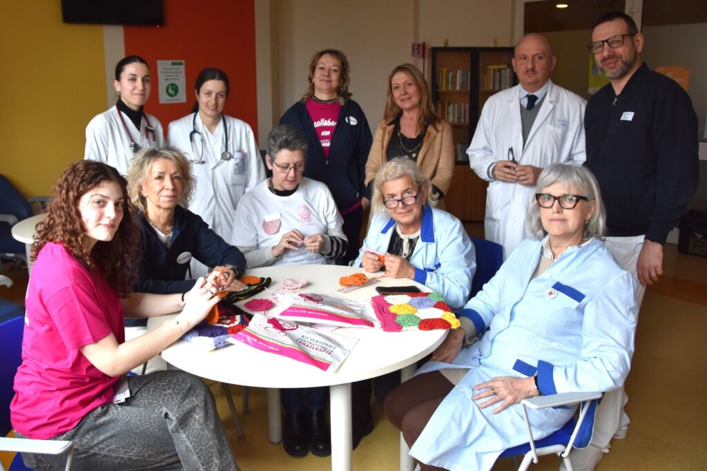 L’iniziativa, avviata nel novembre 2025, nasce da un’idea semplice ma profondamente significativa: offrire alle pazienti che lo desiderano la possibilità di dedicarsi all’uncinetto, realizzando piccoli rombi colorati che vengono poi assemblati per creare graziose borsine artigianali. Un’attività manuale che diventa occasione di incontro, condivisione e leggerezza.